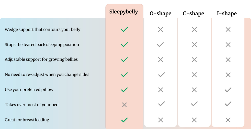 The Sleepybelly pregnancy pillow is the ultimate supportive pillow for a restful sleep while pregnant. Benefits include: